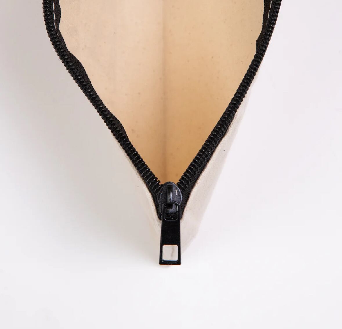 モノトーンのファスナーラインがアクセントに。シンプルながら都会的な印象を演出します。