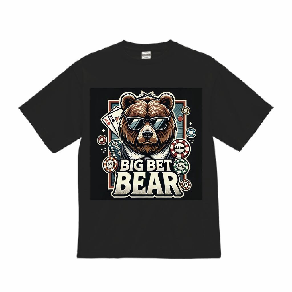 BigBetBearの原点を体現する「元祖」モデル。サングラスをかけたクマがポーカーテーブルの空気をまとい、チップとカードを背に悠然と構える姿は、ブランドの哲学そのものを語ります。